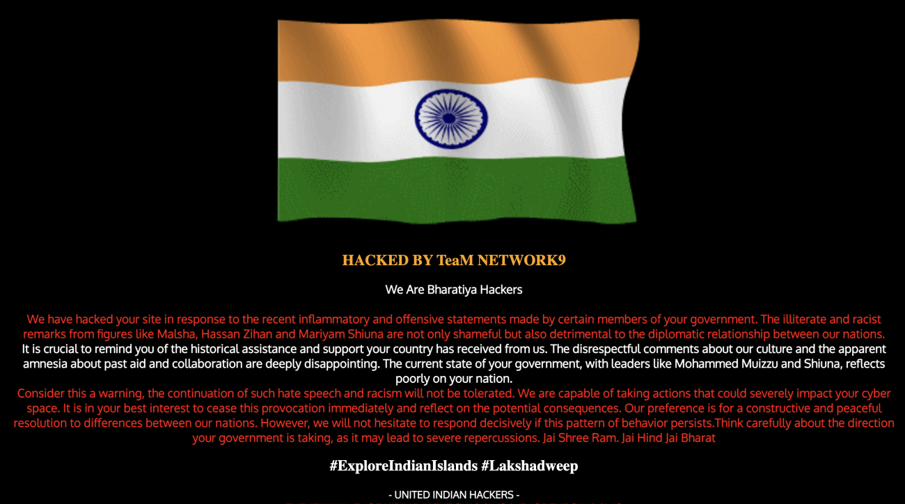 ޖުވެނައިލް ކޯޓްގެ ވެބްސައިޓް ހެކްކުރުމަށްފަހު އިންޑިއާގެ ދިދަ އާއި އެކު ދިގު އިންޒާރުގެ މެސެޖެއް ވަނީ ލިޔެފަ އެވެ. އެކަން ކޮށްފައި ވަނީ އިންޑިއާގެ "ނެޓްވޯކް9" އިން ކަމަށް ވެސް ބުނެފައިވެ އެވެ.