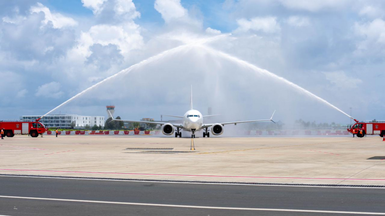 އަދި ޓާމިނަލް 1 އަށް ކައިރި ކުރި މެލޭޝިއާ އެއާލައިންސްގެ ފުރަތަމަ މަތިންދާބޯޓު، MH485އަށް މަރުހަބާ ކިއުމުގެ ގޮތުން ހާއްސަ ވޯޓާ ސެލިއުޓެއް އަރުވައި, އެ ފްލައިޓުން ރާއްޖެ އައި 172 ފަސިންޖަރުންނަށް ވަނީ ސަގާފީ ހަރަކާތްތަކާއެކު ހޫނު މަރުހަބާއެއް ކިޔައިފަ އެވެ.