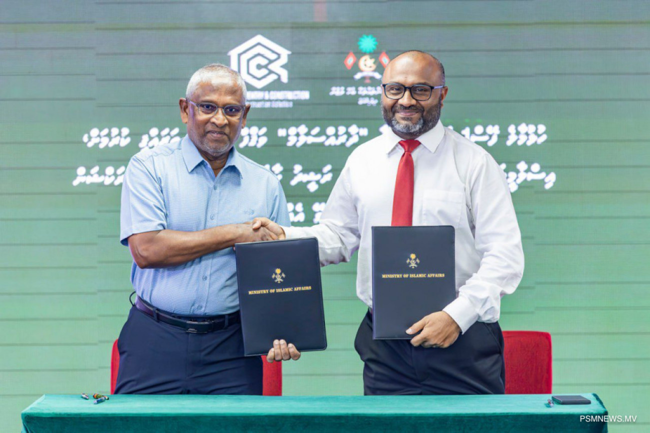 މިކަމަށްޓަކައި މިއަދު އިސްލާމީ މަރުކަޒުގެ ޖަލްސާކުރާ މާލަމުގައި ވަނީ ޚާއްސަ ރަސްމިއްޔާތެއް ބާއްވާފައެވެ. މި ރަސްމިއްޔާތުގައި މި މަޝްރޫޢުގެ އެއްބަސްވުމުގައި އިސްލާމީކަންތައްތަކާ ބެހޭ ވުޒާރާގެ ފަރާތުން ސޮއިކުރެއްވީ އިސްލާމީކަންތައްތަކާ ބެހޭ ވަޒީރު ޑރ. މުޙައްމަދު ޝަހީމް އަލީ ސަޢީދު އެވެ. އަދި އެ ކުންފުނީގެ ފަރާތުން ސޮއިކުރެއްވީ ޑެޕިއުޓީ މެނޭޖިންގ ޑިރެކްޓަރ އާދަމް ރަޚީމްއެވެ.