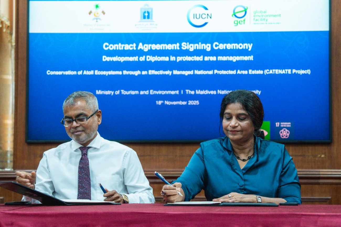 ހިމާޔަތްކޮށްފައިވާ ސަރަހައްދުތައް މެނޭޖުކުރުމާ ގުޅޭގޮތުން ޑިޕްލޮމާ ކޯހެއް ފަރުމާ ކުރުމަށް ޓޫރިޒަމް މިނިސްޓްރީ އާއި ދިވެހިރާއްޖޭގެ ގައުމީ ޔުނިވާސިޓީ (އެމްއެންޔޫ) އާއެކު އެއްބަސްވުމެއްގައި ސޮއިކޮށްފި އެވެ.