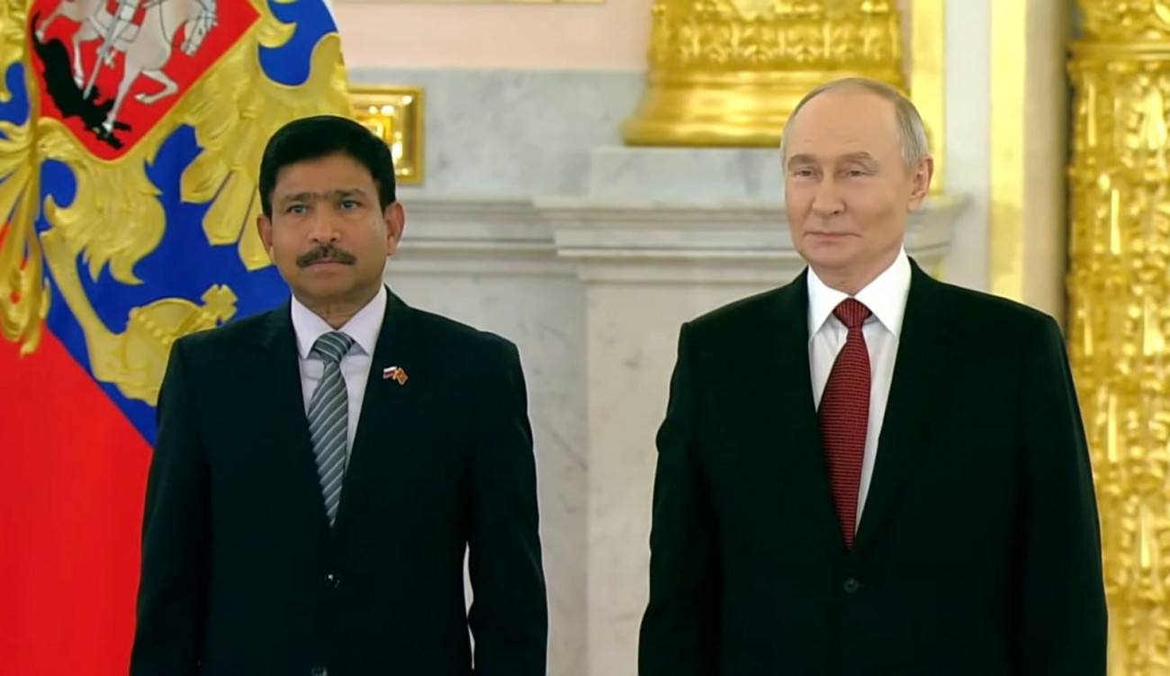 ރާއްޖެއިން ރަޝިއާ އަށް ކަނޑައެޅުއްވި ނޮން-ރެސިޑެންޓް ސަފީރު، ލެފްޓެނަންޓް ޖެނެރަލް (ރޓ) އަބްދުއްރަހީމް އަބްދުއްލަތީފް، އެމަނިކުފާނުގެ ސަފީރުކަމުގެ ފަތްކޮޅު ރަޝިއާގެ ރައީސް، ވްލަޑިމިއާ ޕުޓިން އަށް އަރުވައިފި އެވެ.