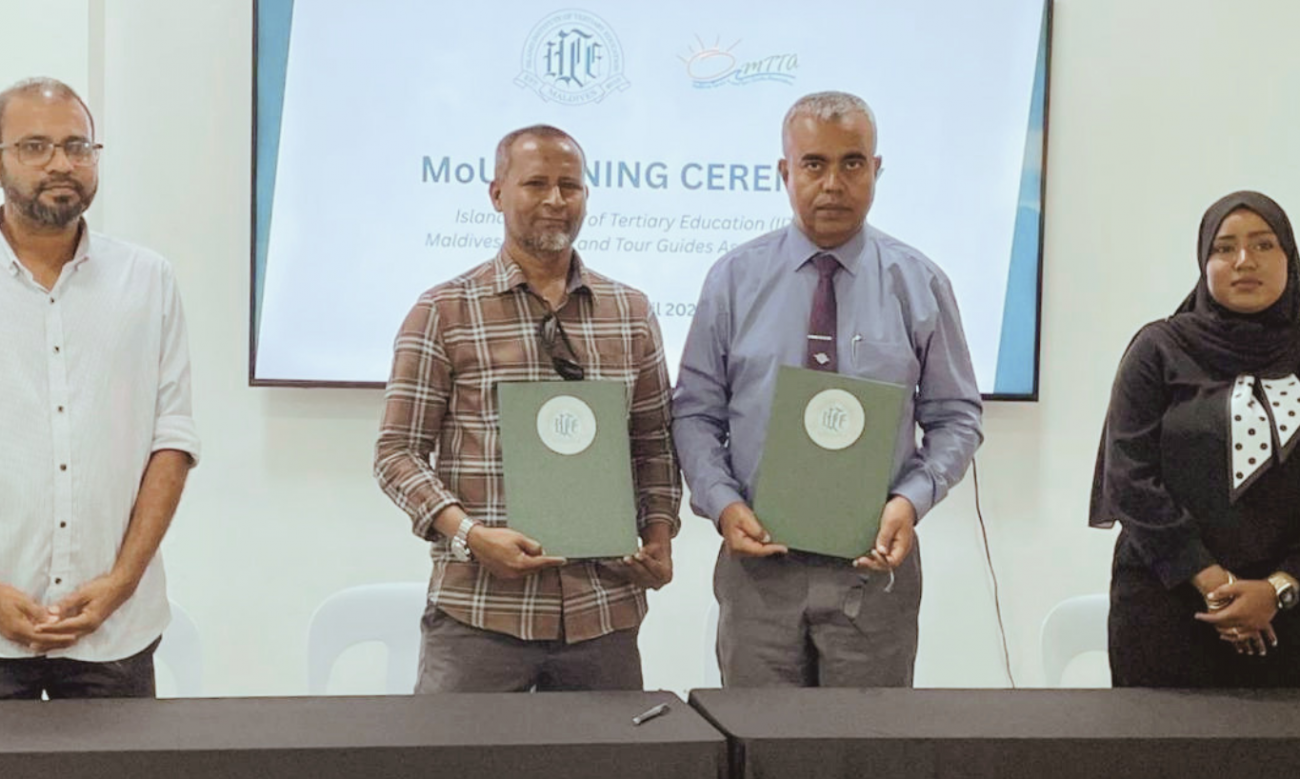 އައިލަންޑް އިންސްޓިޓިއުޓް އޮފް ޓާޝަރީ އެޑިޔުކޭޝަން (އައިއައިޓީއީ) އިން މޯލްޑިވްސް ޓޫރިޒަމް އެންޑް ޓުއާ ގައިޑްސް އެސޯސިއޭޝަން (އެމްޓީޓީއޭ) ގުޅިގެން ރާއްޖޭގައި ޓުއާ ގައިޑުން ތަމްރީން ކުރަން އެމްއޯޔޫއެއްގައި ސޮއިކޮށްފި އެވެ.