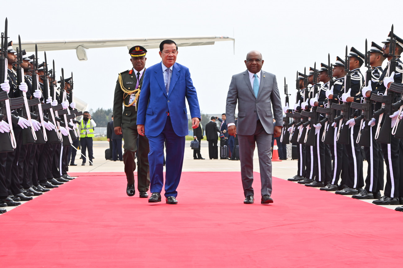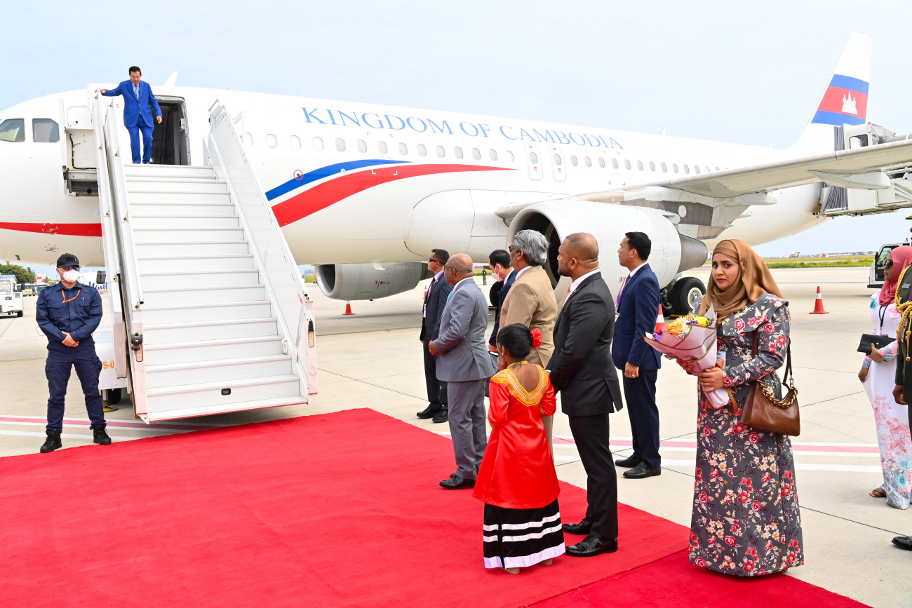 ރާއްޖެއިން ކެމްބޯޑިއާއާއެކު ސިޔާސީ ގުޅުން ގާއިމް ކުރީ ސެޕްޓެމްބަރު، 21. 1995 ގައެވެ. ރައީސް އިބްރާހީމް މުހައްމަދު ސޯލިހުގެ ދައުވަތަކަށް ކެމްބޯޑިއާގެ ބޮޑުވަޒީރު ސަމްދެކް އައްކާ މޮހަ ސެނާ ޕަޑައި ޓެކޯ ހުން ސެން މިއަދު ހެނދުނު ވަނީ ރާއްޖެ ވަޑައިގެންފަ އެވެ. މިއީ ކެމްބޯޑިއާގެ ބޮޑުވަޒީރަކު ރާއްޖެއަށް ވަޑައިގެންނެވި ފުރަތަމަ ފަހަރެވެ. ބޮޑުވަޒީރަށް ދަންނަވާ ރަސްމީ މަރުހާބާގެ ހަރަކާތްތައް އޮންނާނީ މާދަމާ އެވެ.